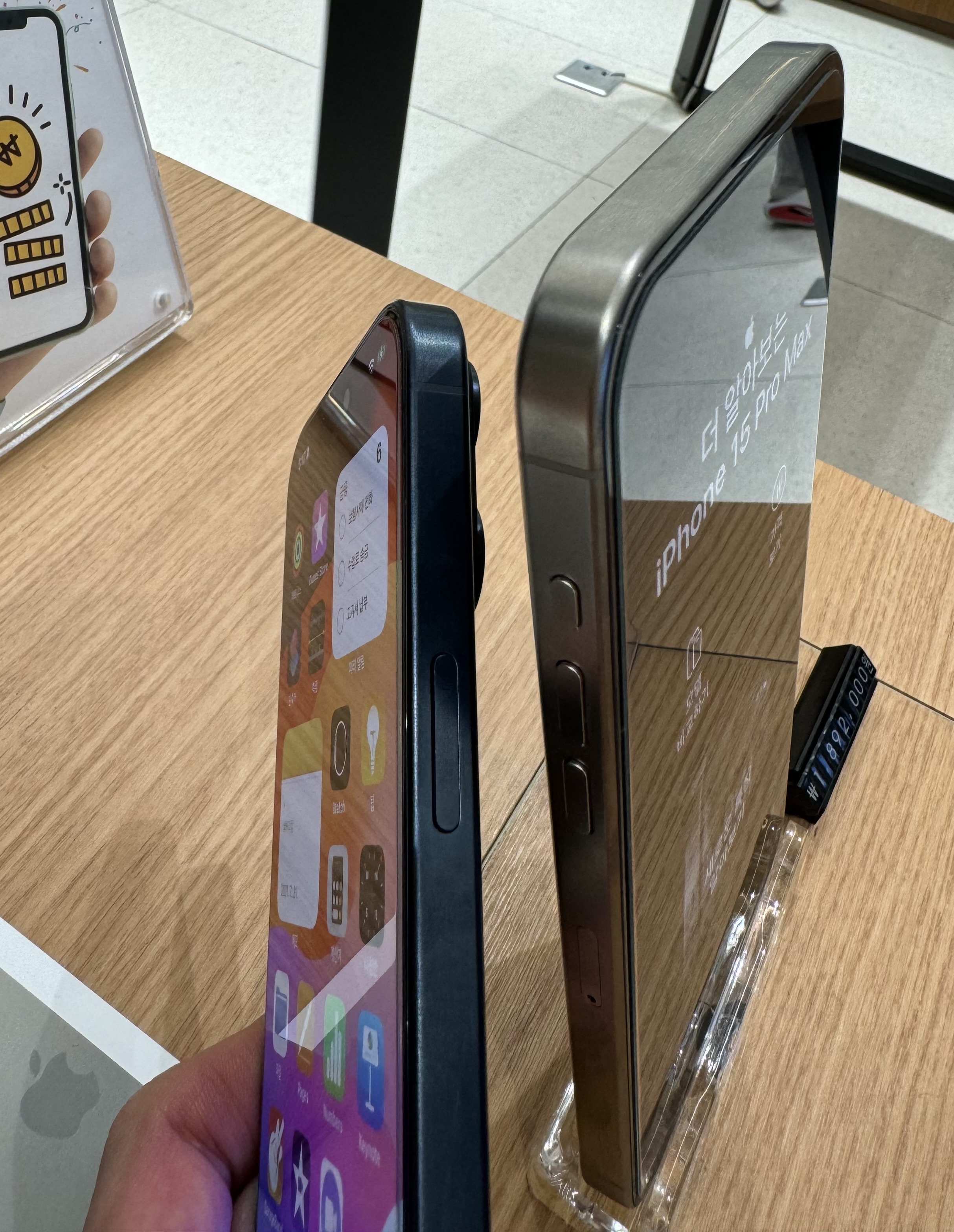 내추럴: 마찬가지로 신제품을 쓰는 티가 확연히 나는 내추럴 컬러입니다. 티타늄 본연의 느낌을 가장 잘 전달하는 색상이기 때문에 많은 관심을 받고 있기도 한데요, 개인적으로는 매우 아쉽습니다. 아쉬운 이유 중 하나가 기존에 이미 실버 컬러 아이폰을 오래 사용하기도 해서 이번 아이폰 출시 전에는 골드 컬러를 구매할 생각이었어요. 그런데 이번엔 골드 컬러가 없어졌더라구요! 어떤 분은 내추럴 컬러가 기존 스테인리스 스틸 골드 느낌이 난다고도 하시는데 제가 직접 확인한 결과 골드 느낌은 전혀 나지 않습니다. 개인적으로 고철, 시멘트 같은 느낌이 강해서 저는 매우 불호입니다. 그래도 어떤 색상이든 최선으로 뽑아내는 애플 답게 이 컬러만의 고급감에 끌려서 구매하시는 분들도 많은 것 같아요.