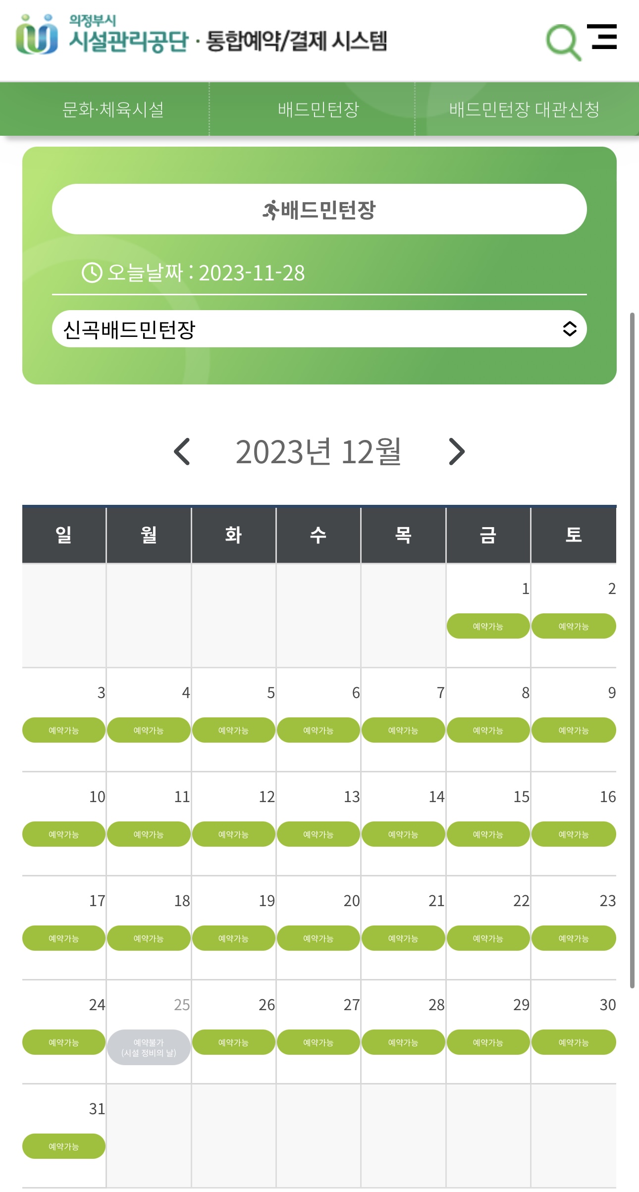 의정부 신곡 실내배드민턴장 이용자로서 도움 되실 만한 정보를 공유해 보겠습니다! + 2023년 12월 부터 강습 접수와 코트 이용 방식이 기존 현장접수 방식에서 인터넷 접수 방식으로 변경되어 해