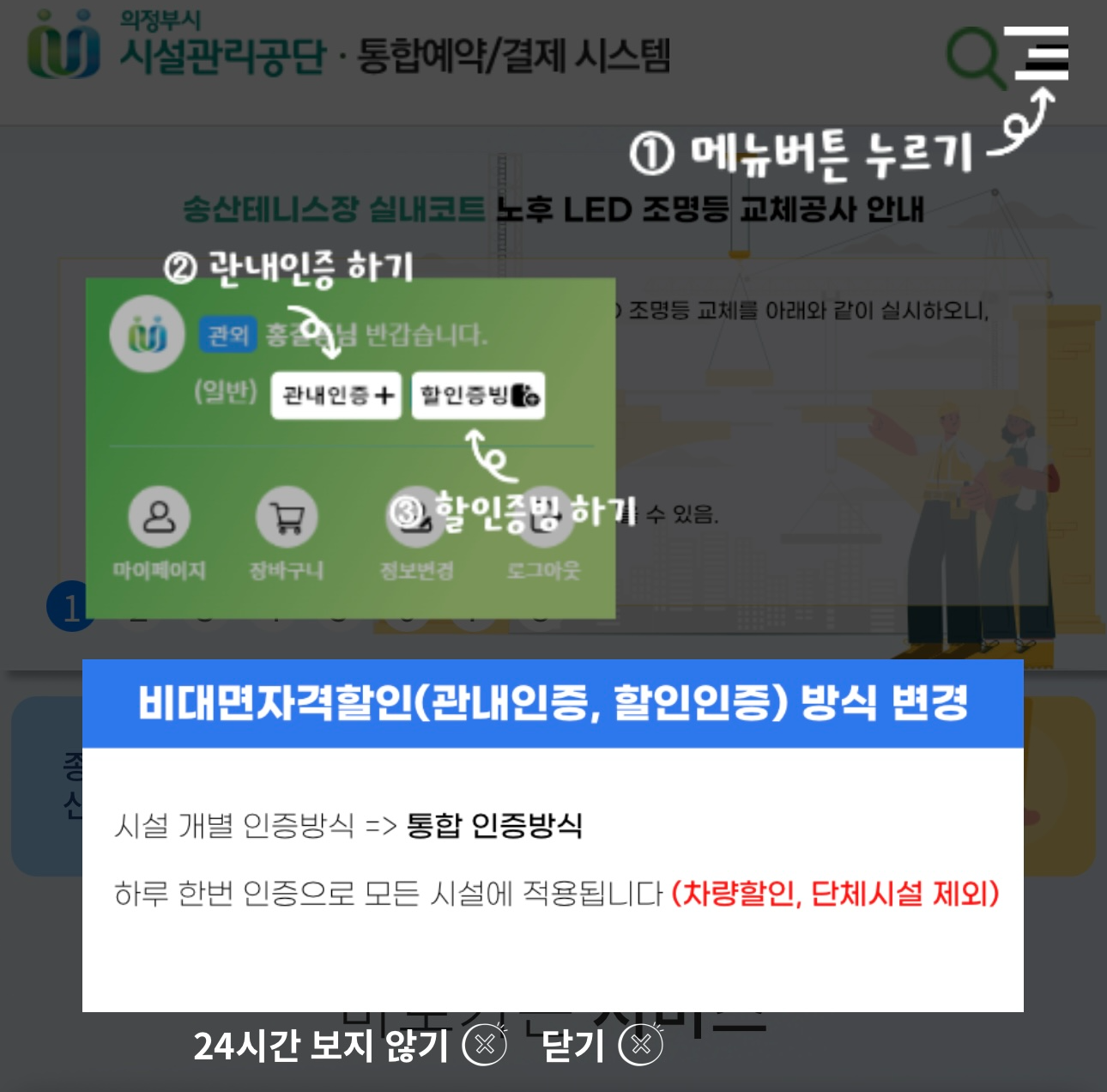Tip) 관내 이용자(의정부시민)이시라면 인증하고 각종 시설 이용 할인받으세요!