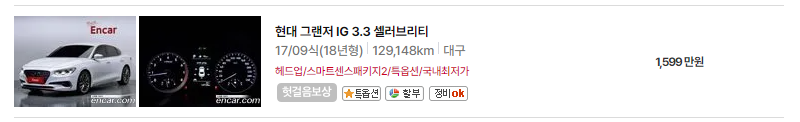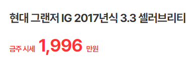 18년형 그랜저 IG 3.3 셀러브리티 모델이 단돈 1,599만원입니다.