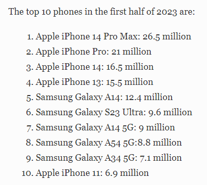 포브스의 기사를 가져와 봤는데요. 매년 전 세계에서 가장 많이 팔린 스마트폰 통계를 보자면 의심할 여지 없이 가장 인기가 많은 모델이 무엇인지 알 수 있습니다.