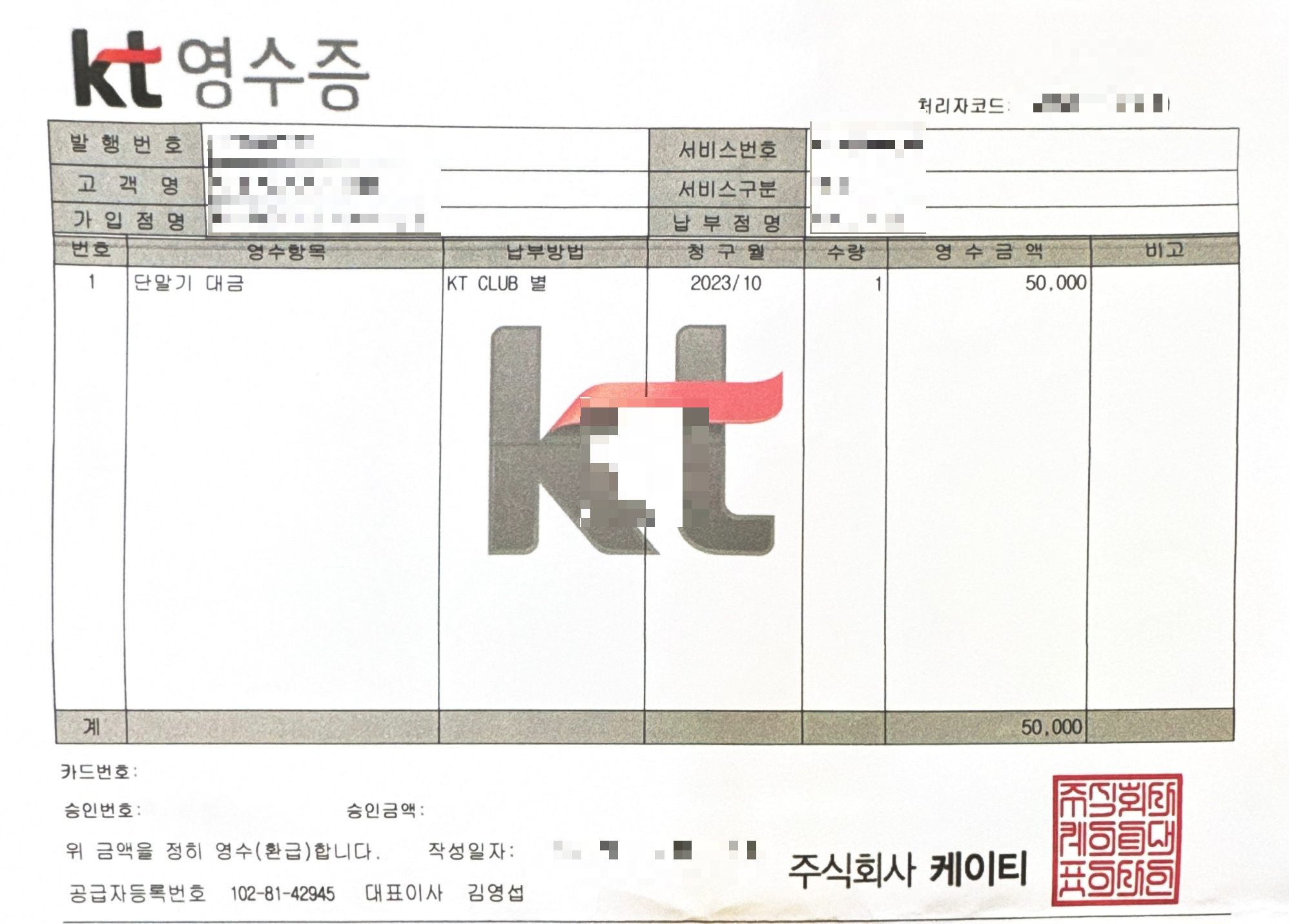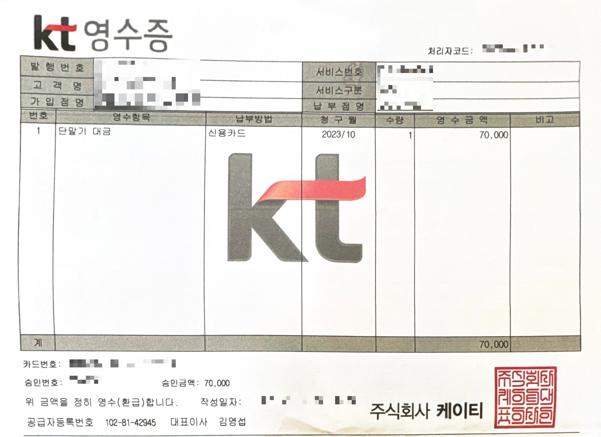 이렇게 포인트 사용 영수증과 신용카드 결제 영수증을 받고 기기는 그자리에서 수령하였어요.