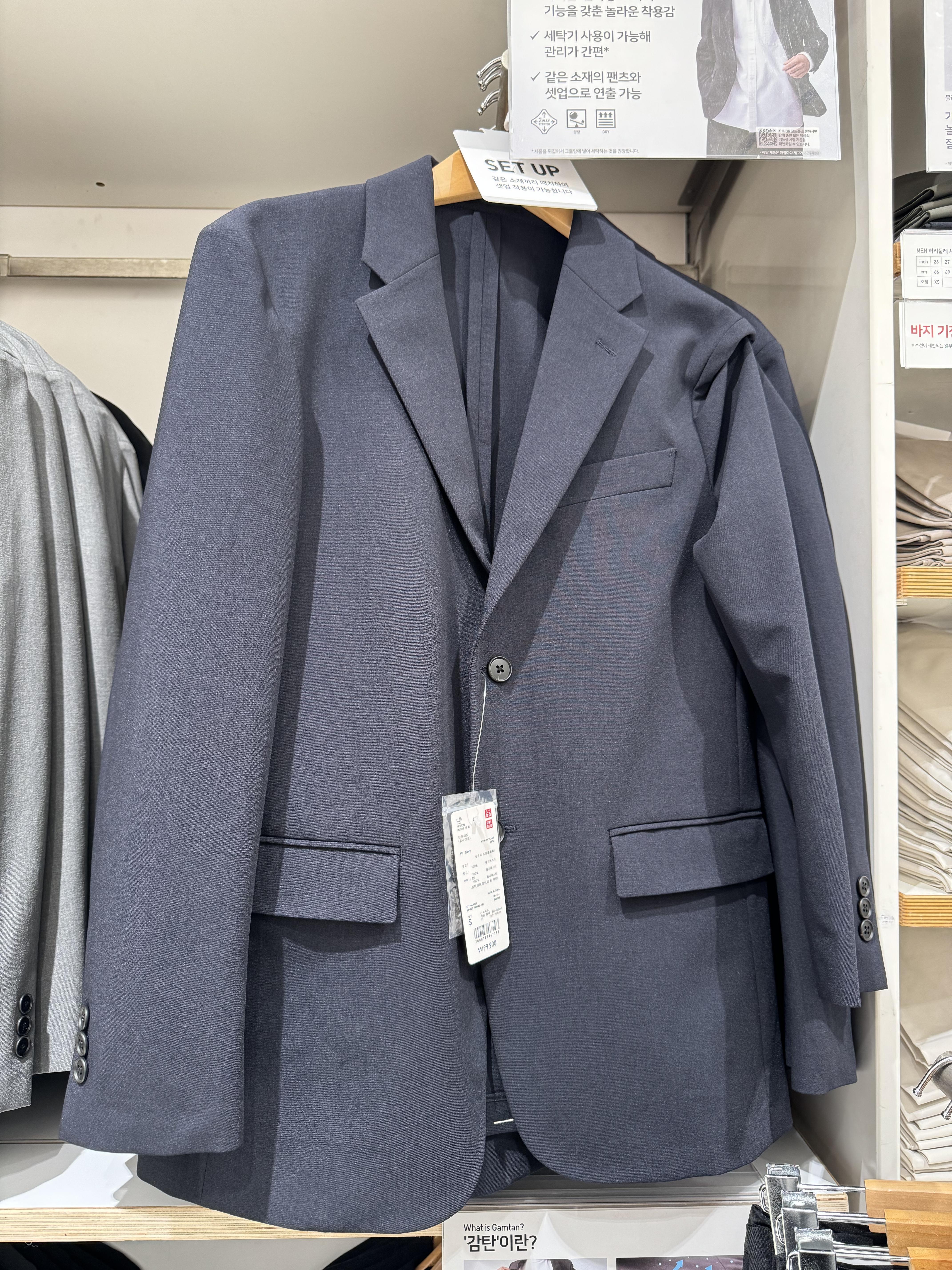 가지고 있는 봄가을용 셋업/정장은 넘치는데 더 더울 때 입을 수 있는 포멀한 느낌의 셋업을 찾다보니 유니클로의 감탄 자켓/감탄 팬츠가 눈에 들어왔어요.