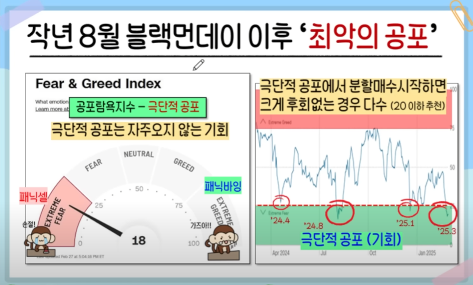 1. 역사적으로 이정도의 '극단적 공포' 상황에서 매수했을 때 수개월 뒤 반등할 가능성이 유의미하게 높았습니다.