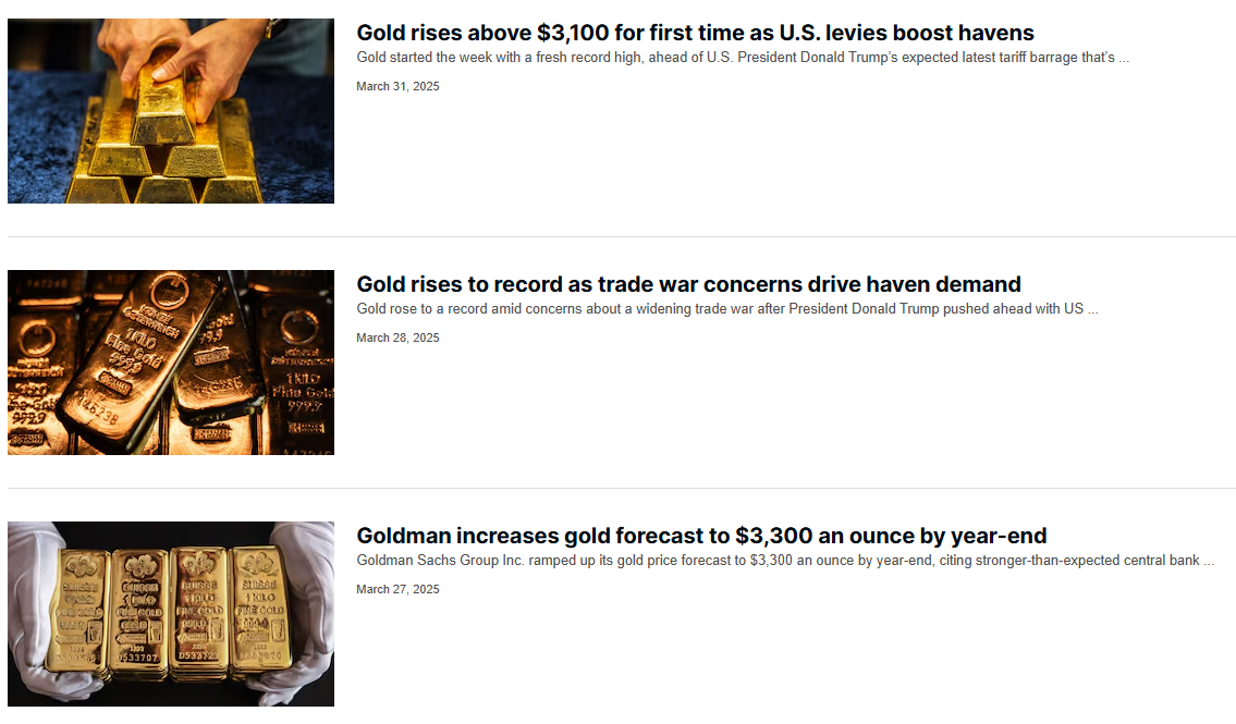· 특히, 오는 4월 2일을 '미국 해방의 날'로 선언하며 자국에 유리한 무역 국제 질서를 확립하기 위한 움직임으로 상호관세 발표를 앞두고 있는데요, 이러한 불확실성으로 인해 주식 가격은 빠졌지만, 안전자산으로 여겨지는 금 가격은 인상되는 추세입니다.