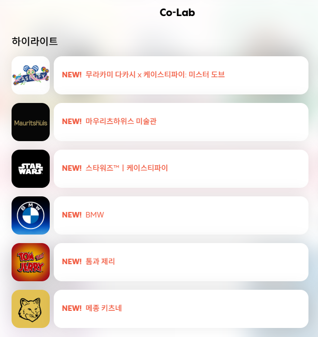 케이스티파이에서는 여러 브랜드와 협업을 거쳐 제품을 출시하죠.