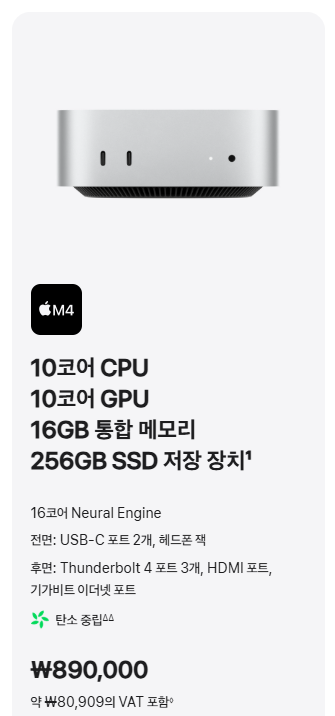 참고로 M5칩이 탑재된 맥미니가 후에 나오더라도 이 글이 그대로 참고가 되실 거예요.