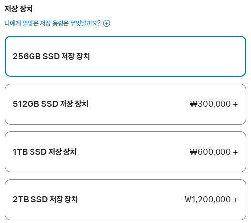 <<이렇게 M4 기본 모델에서 용량과 메모리를 한 단계씩만 업그레이드한 저의 두번째 추천 옵션이 완성되었습니다.>>