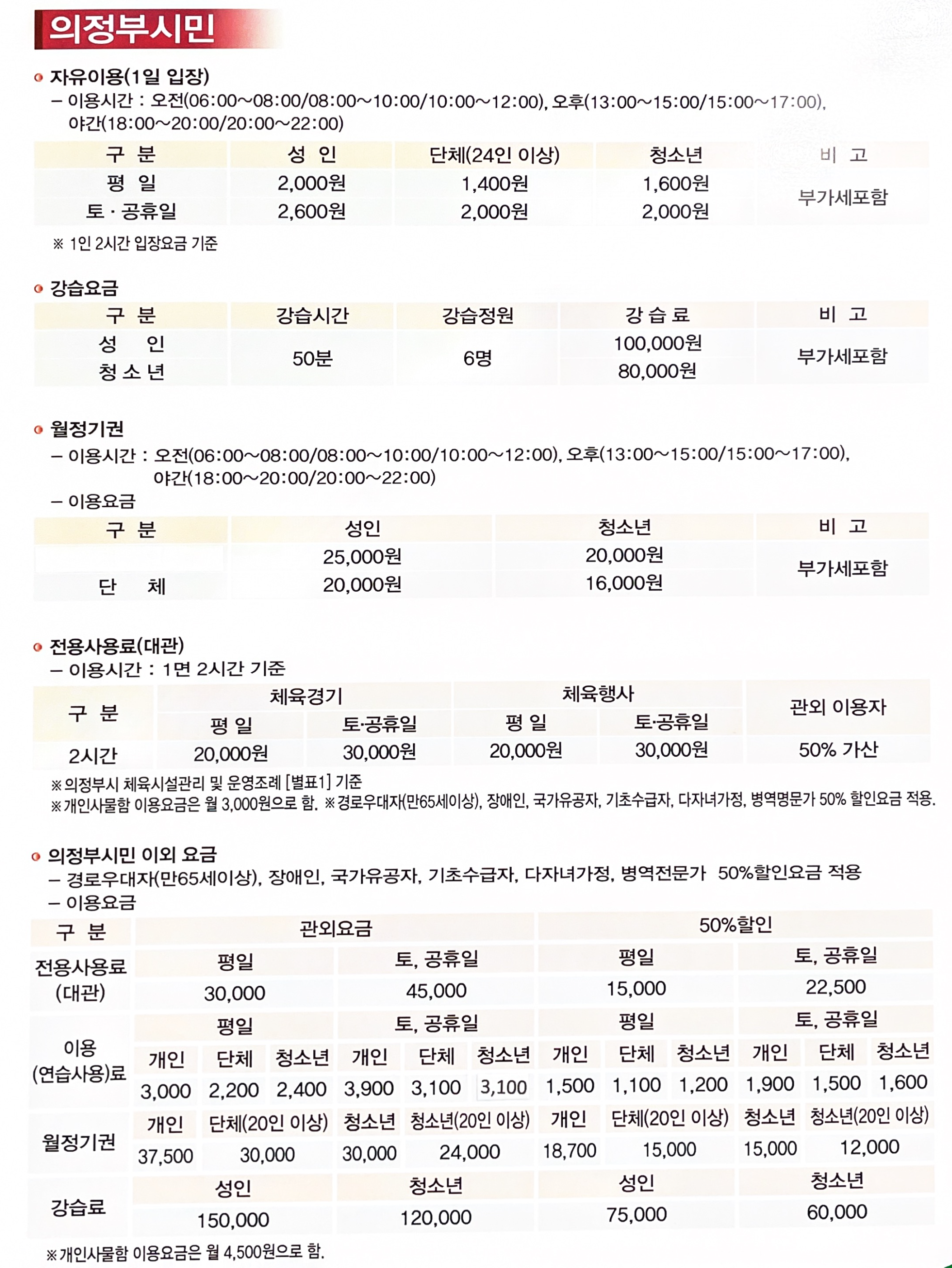 의정부 신곡배드민턴장 이용방법/코트/강습·레슨 온라인 예약/가격(2023년 말~ 적용)
