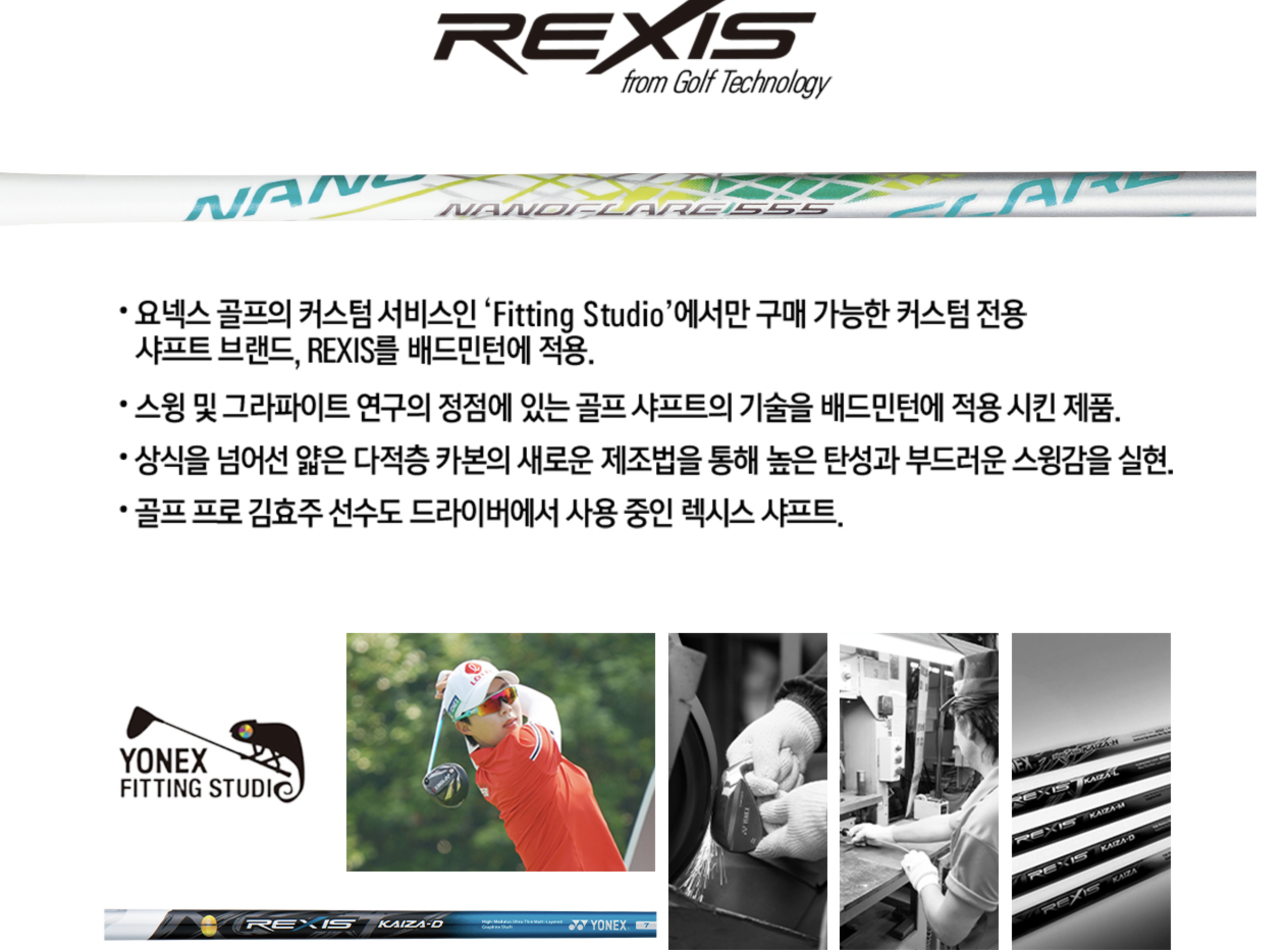 바로 '요넥스 골프채에 사용하는 정점의 샤프트 기술이 적용'된 REXIS 샤프트이기 때문인데요.