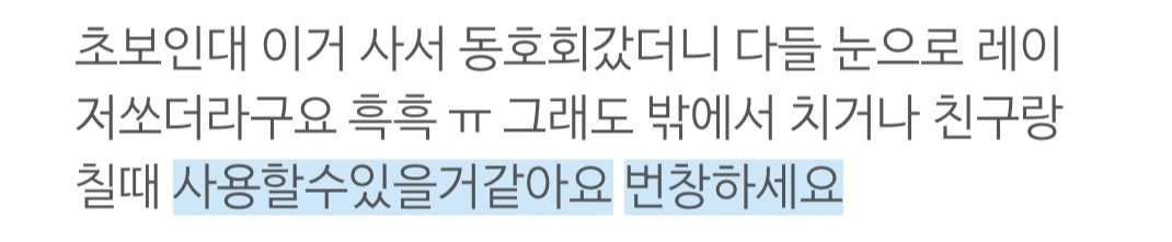 제가 글 초반부에 올려둔 어떤 분의 후기 캡처본이 바로 이 셔틀콕에 대한 후기였습니다. 모임엔 들고 가지 않는 게 눈치 세례를 받지 않는 방법이구요 ㅎㅎㅎ