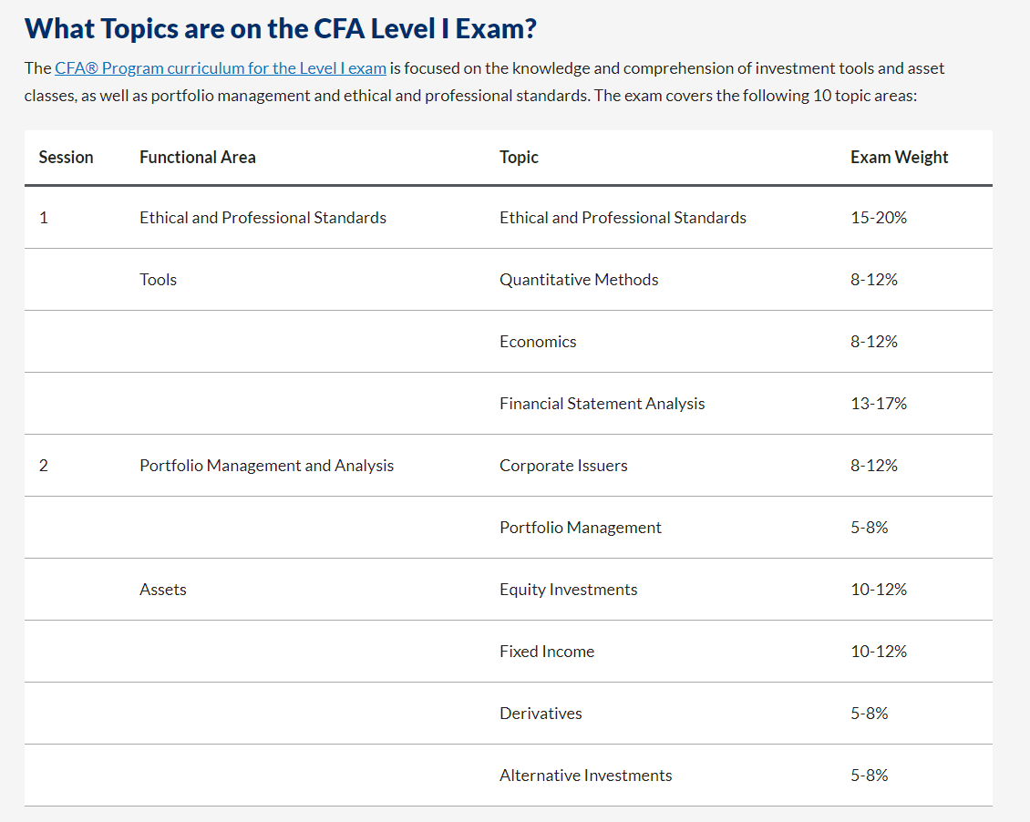 - CFA 시험은 총 10과목으로 구성됩니다.