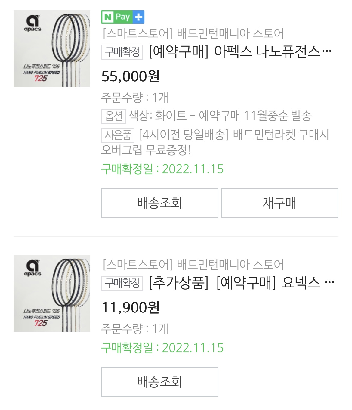 2022년 11월 내돈내산 구매한 라켓의 후기입니다!