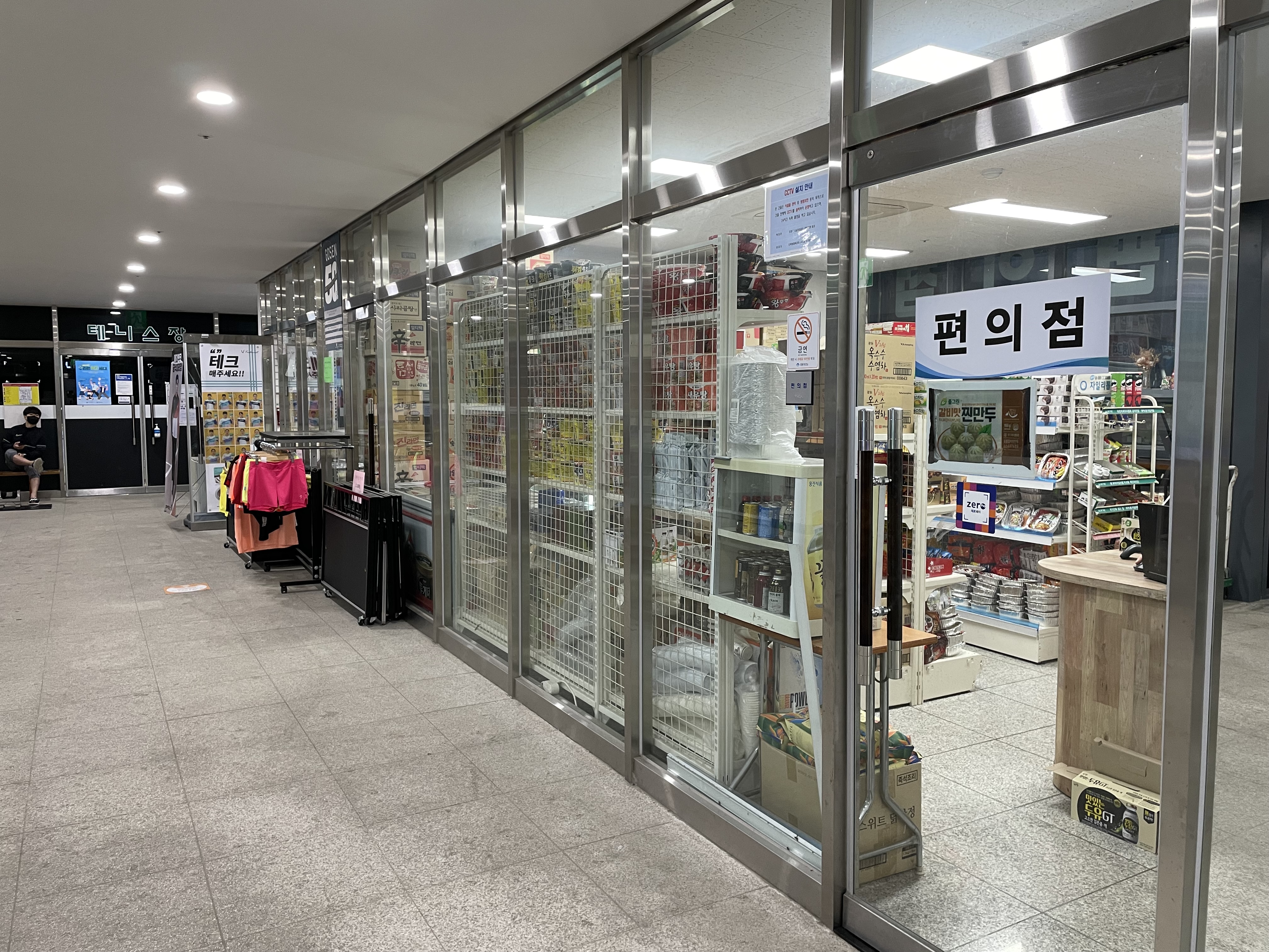 - 배드민턴(+ 테니스) 용품을 구매할 수 있는 용품점이 편의점 바로 옆에 있습니다!