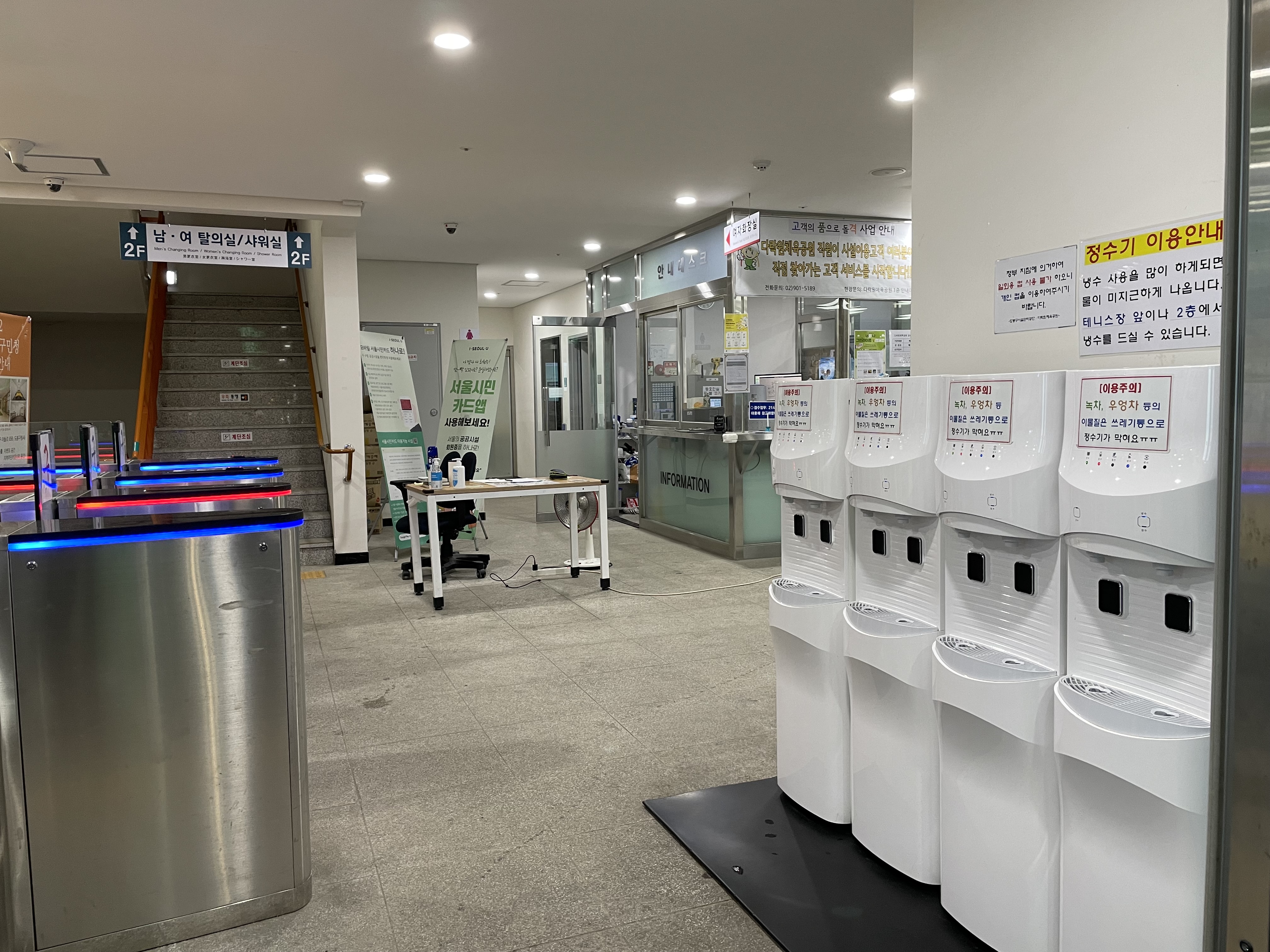 - 2층엔 남/여 탈의실과 샤워실이 마련되어 있습니다.