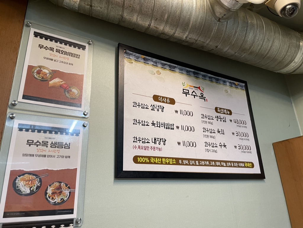 저는 항상 식사류를 먹으러 무수옥에 방문하긴 하지만 설렁탕에 들어가는 고기 질만 보더라도 구이 또한 훌륭할 것이라는 생각이 듭니다.