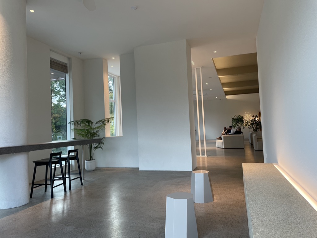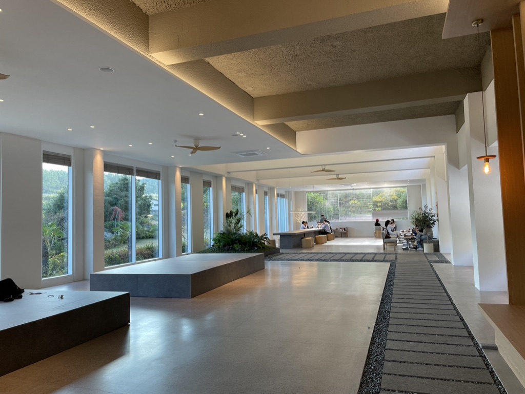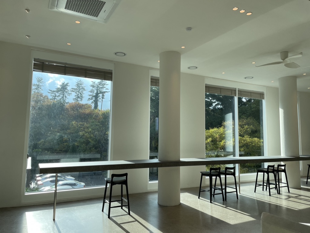 널찍하고 쾌적한 공간, 조화로운 구조물, 통유리로 보이는 바깥 공간이 훌륭합니다.