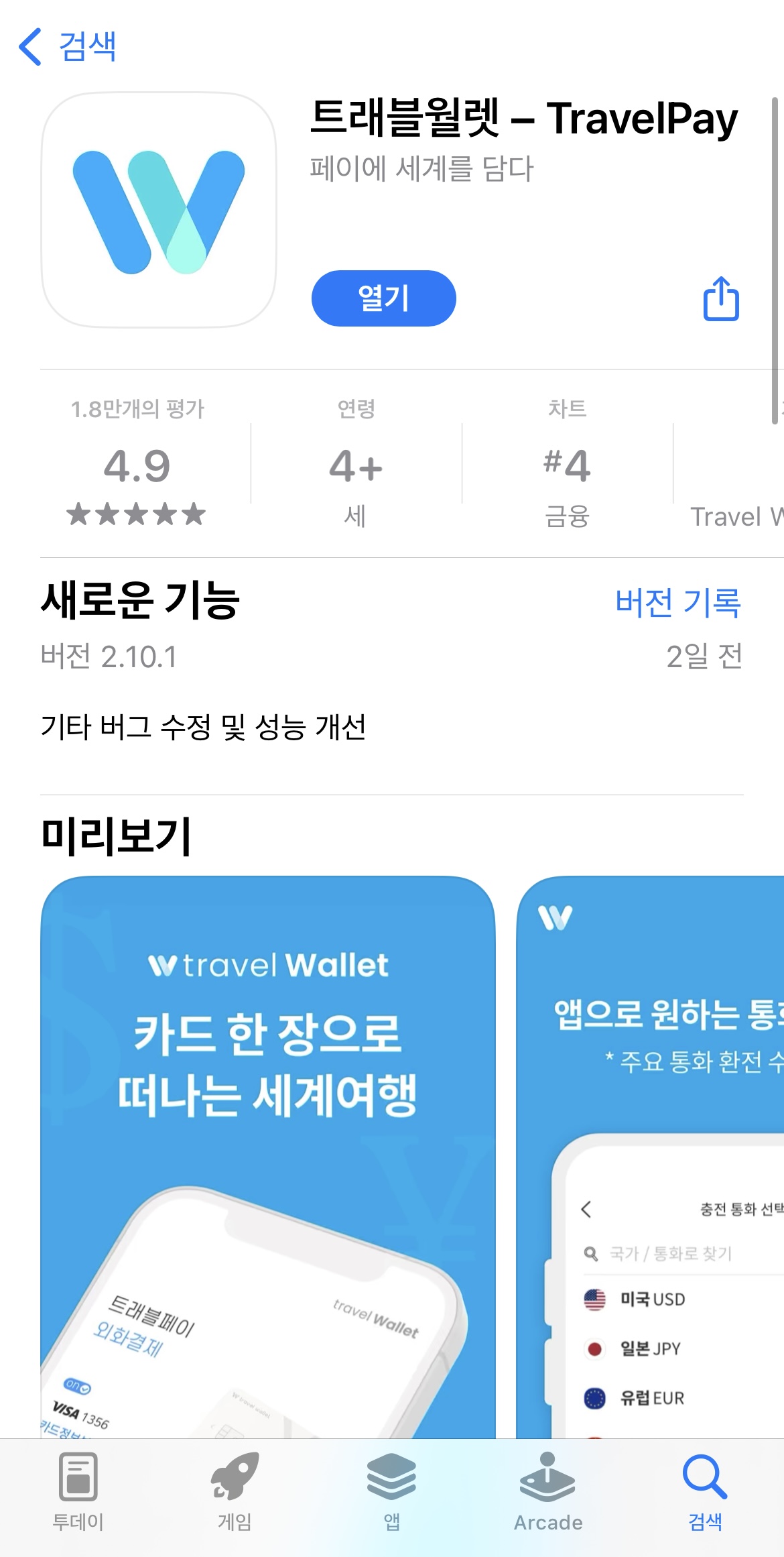 1. App Store 또는 Google Play에서 '트래블월렛' 다운로드