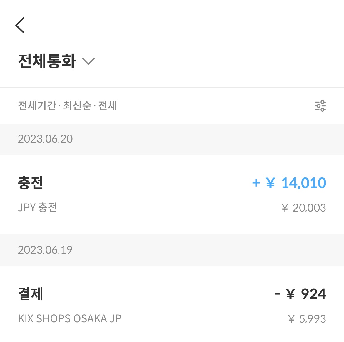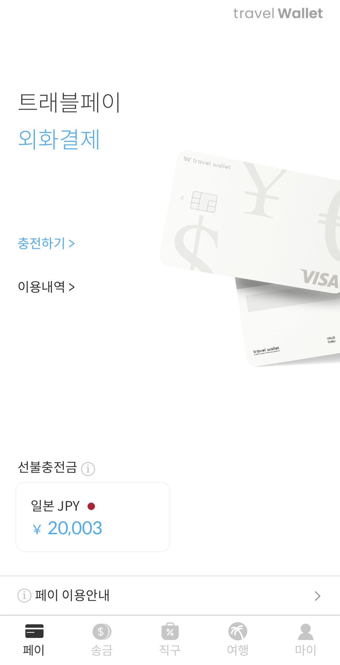 여행 중에도 본인의 은행 앱을 통해 그때그때 충전할 수 있어서 매우 편리합니다.