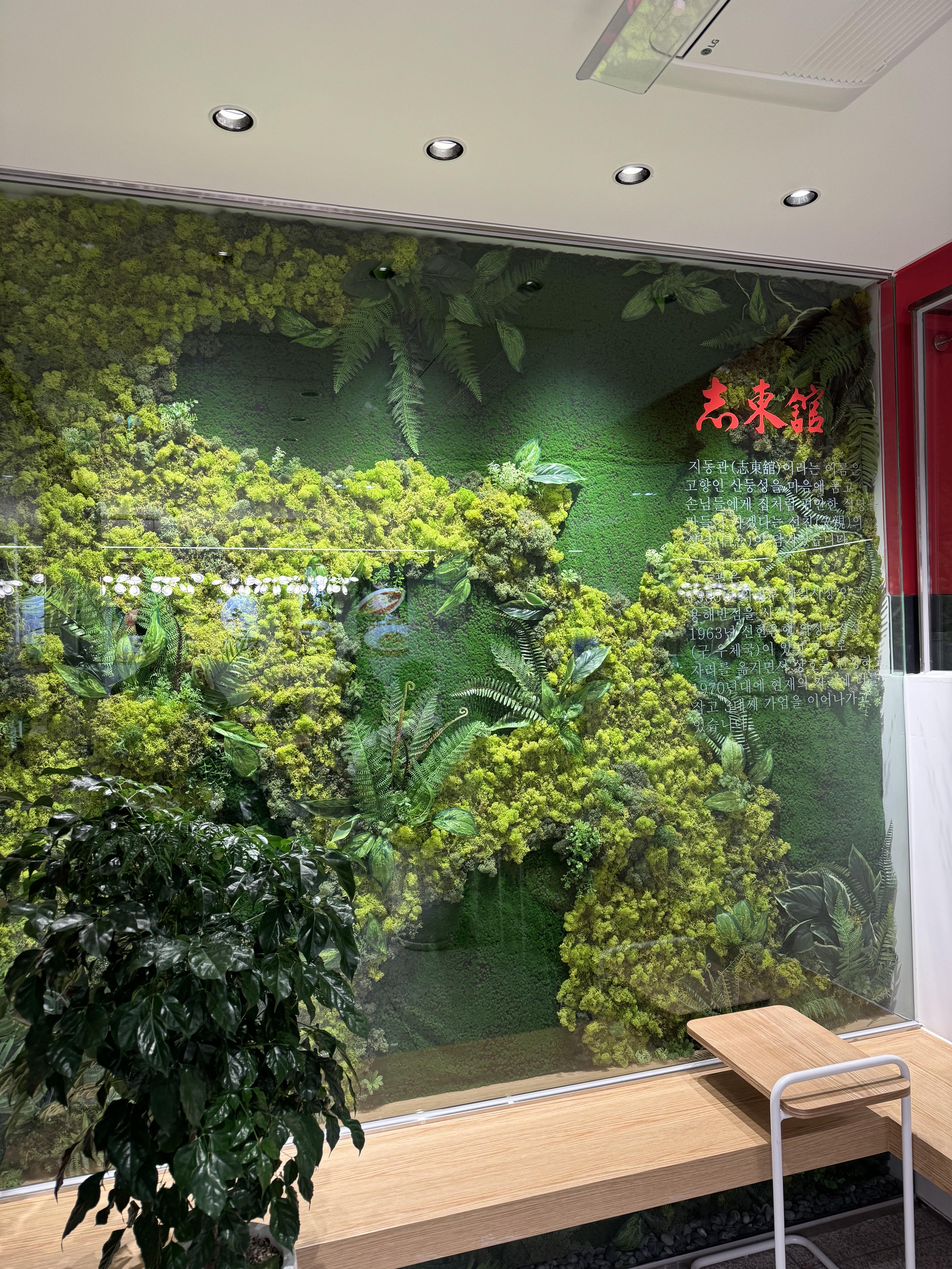 리모델링 이후 1층 내부에 초록초록한 벽이 생겼네요 ㅎㅎ