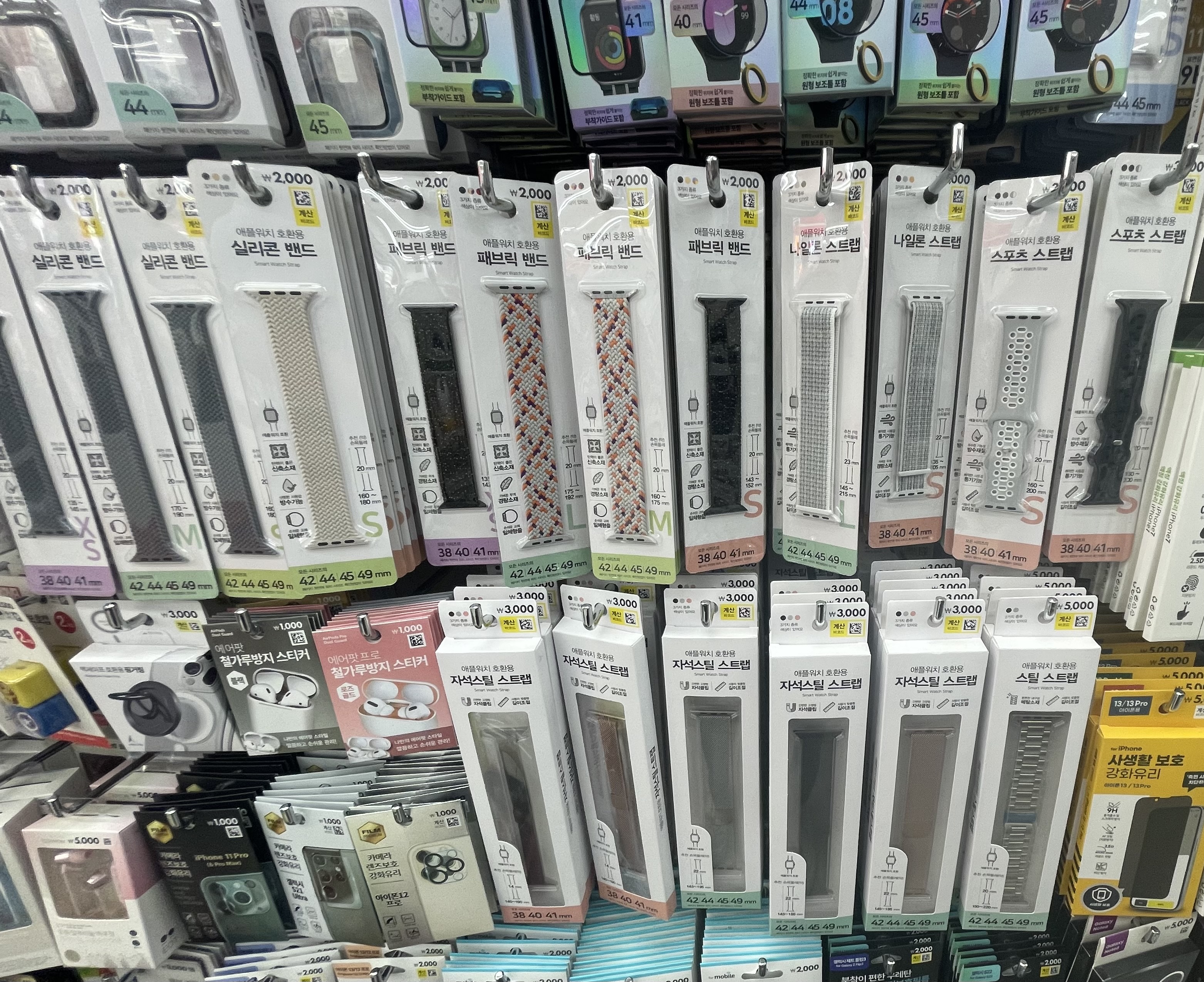 요즘 유명 유튜버들이 다이소의 애플워치 밴드 리뷰를 올리고 있어서 혹시 매장에 재고가 없을까 하기도 했는데 그정도는 아니더라구요 ㅎㅎㅎㅎ 재고 충분히 있었습니다!