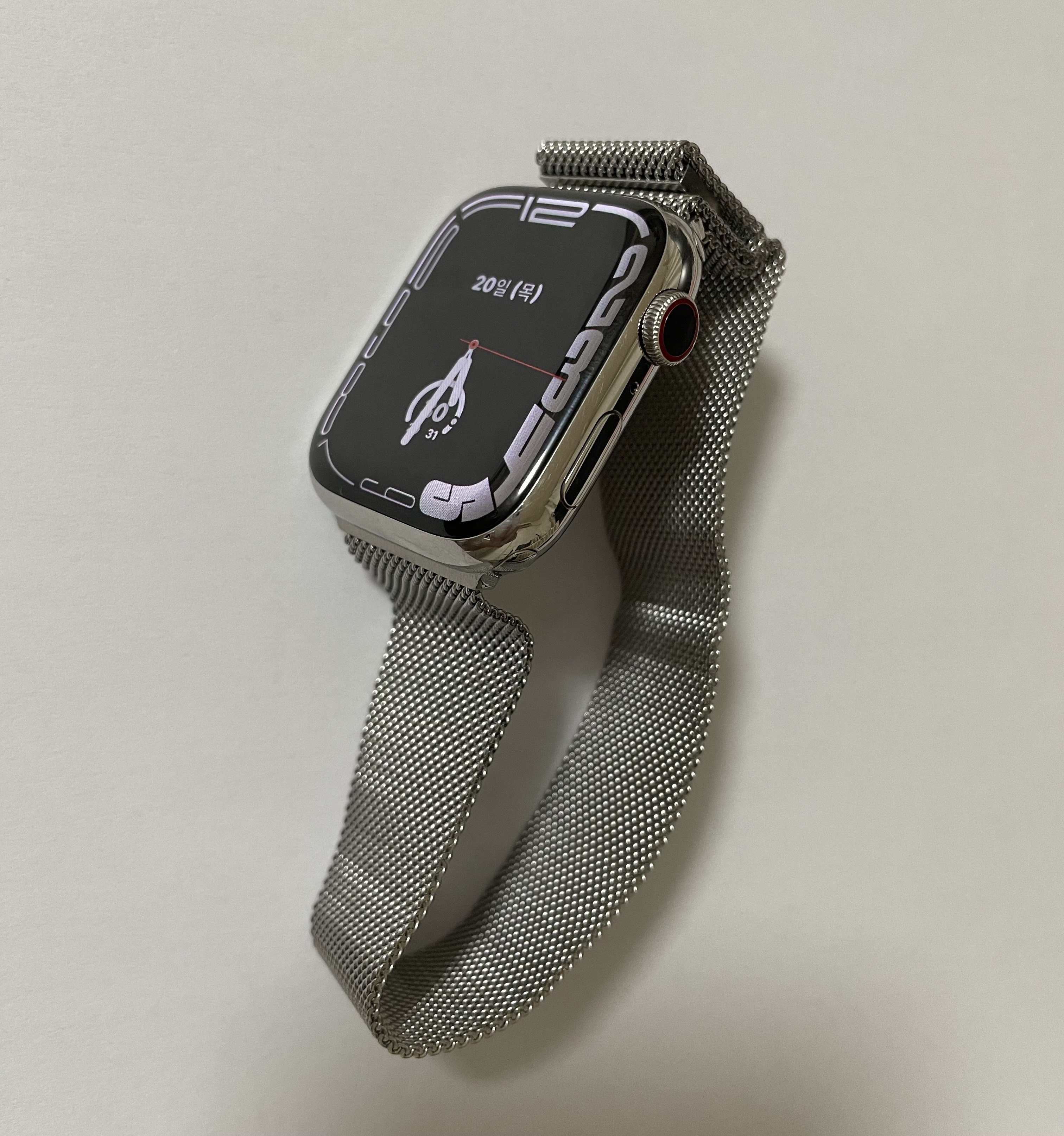 제 워치는 애플워치7 45mm 스테인리스 스틸 모델입니다.