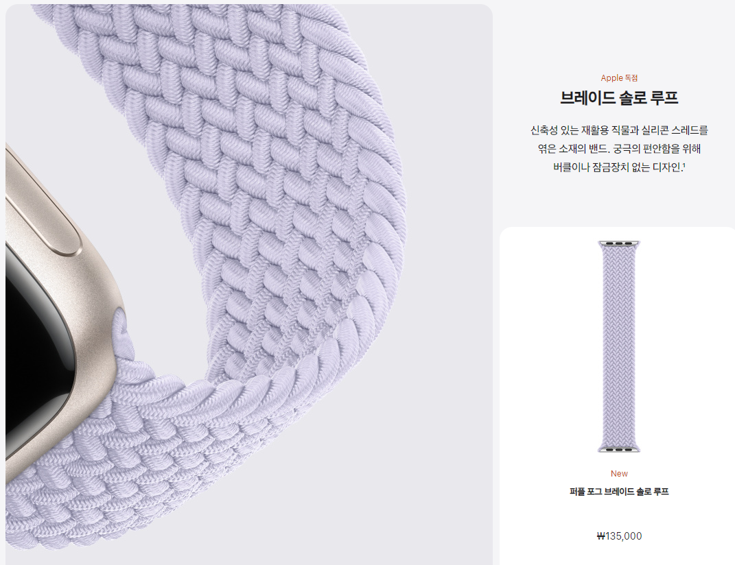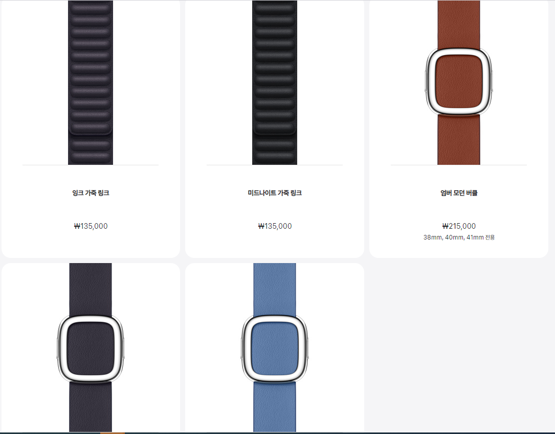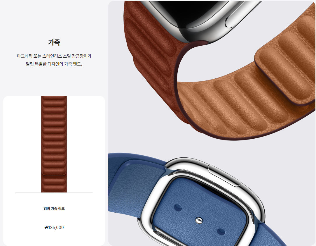 브레이드 솔로 루프와 같은 135,000원입니다. 퀄리티가 매우 훌륭하므로 정품 구입을 추천합니다. 개인적으로 애플워치7 시리즈를 살 때 함께 사서 지금까지도 잘 쓰고 있는 제품입니다. 스마트 워치가 아날로그 시계를 대체할 수 있는 이유에는 현대적인 매력에 더해 이런 고급스러움과 우아함 역시 갖추었기 때문이라고 생각합니다.
