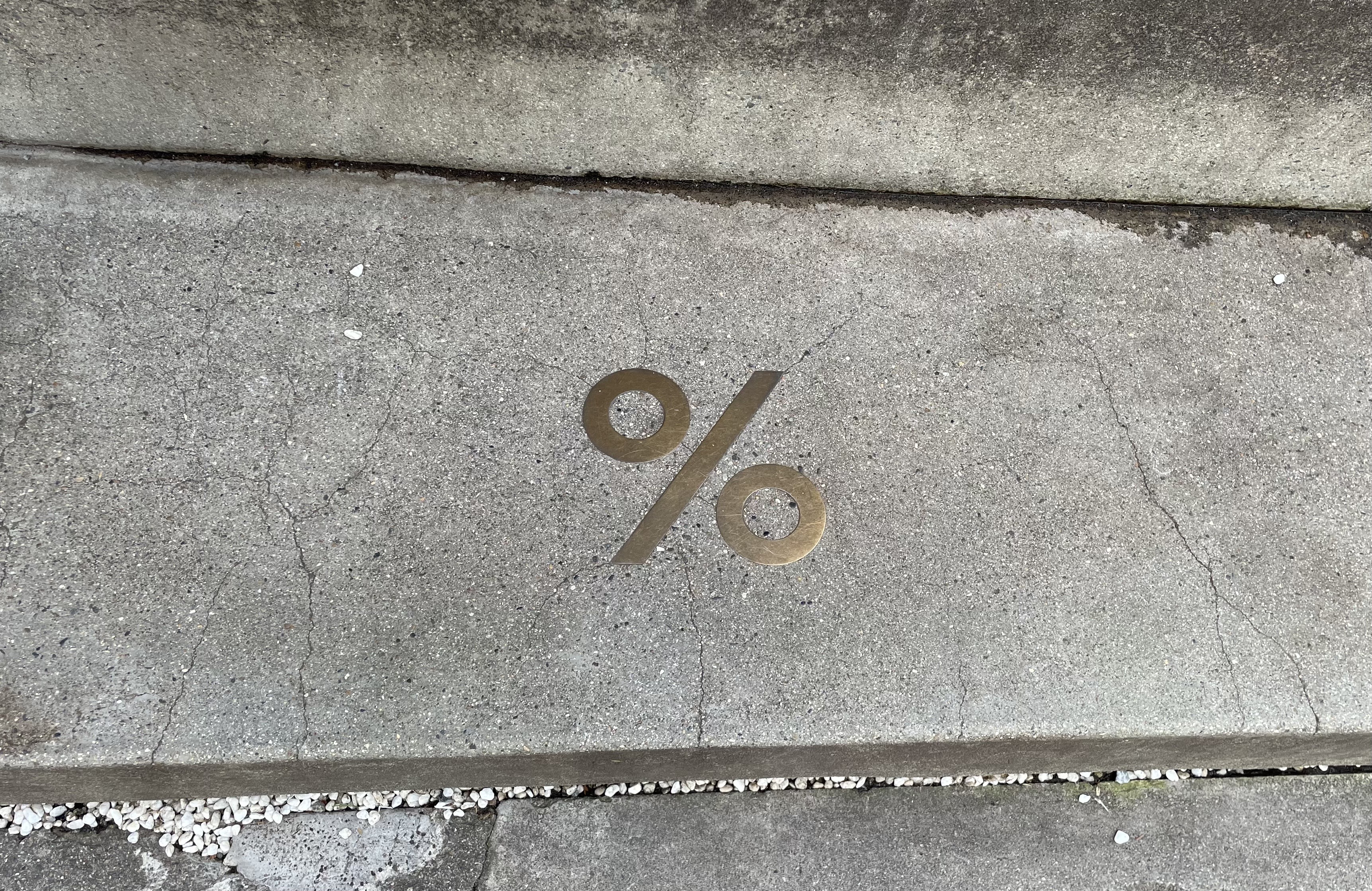 매장으로 들어가는 계단에 이렇게 % 로고가 있었네요