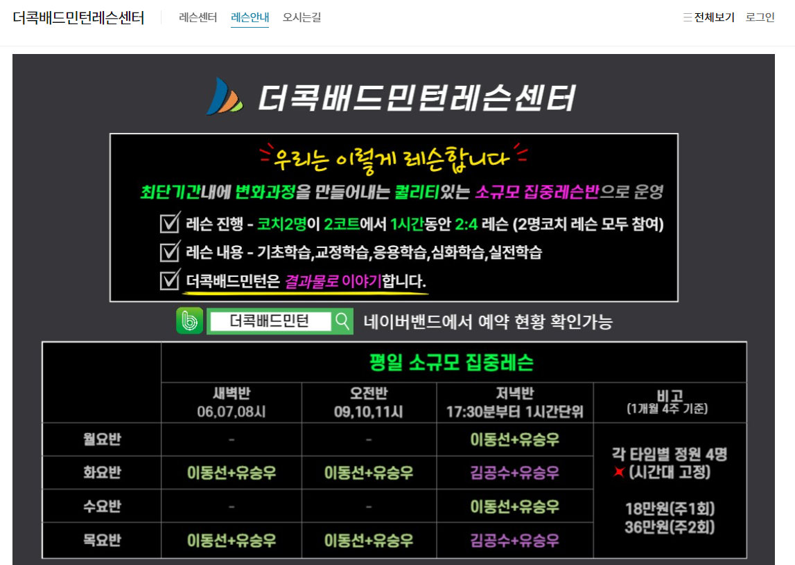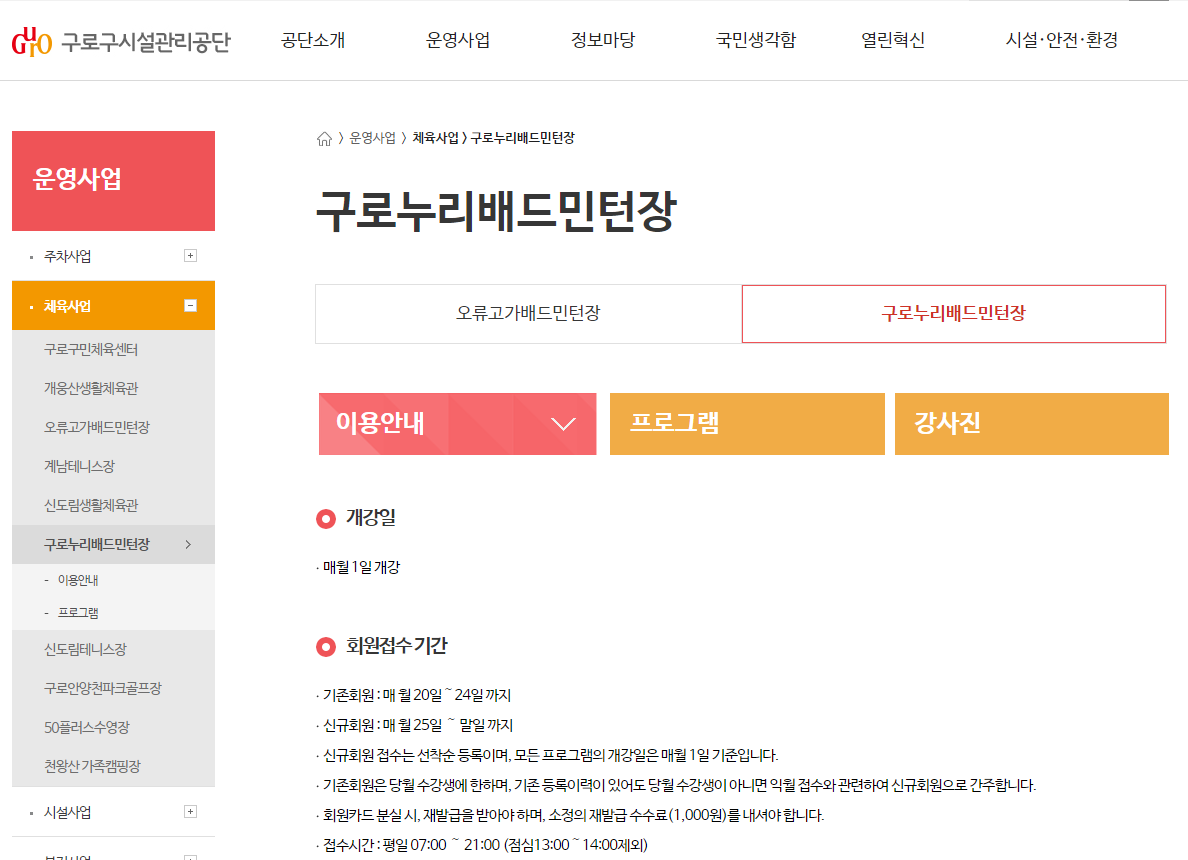 시설관리공단에서 관리하는 지역별 배드민턴장에 가시면 강습에 대한 기본적인 정보를 얻을 수 있습니다.