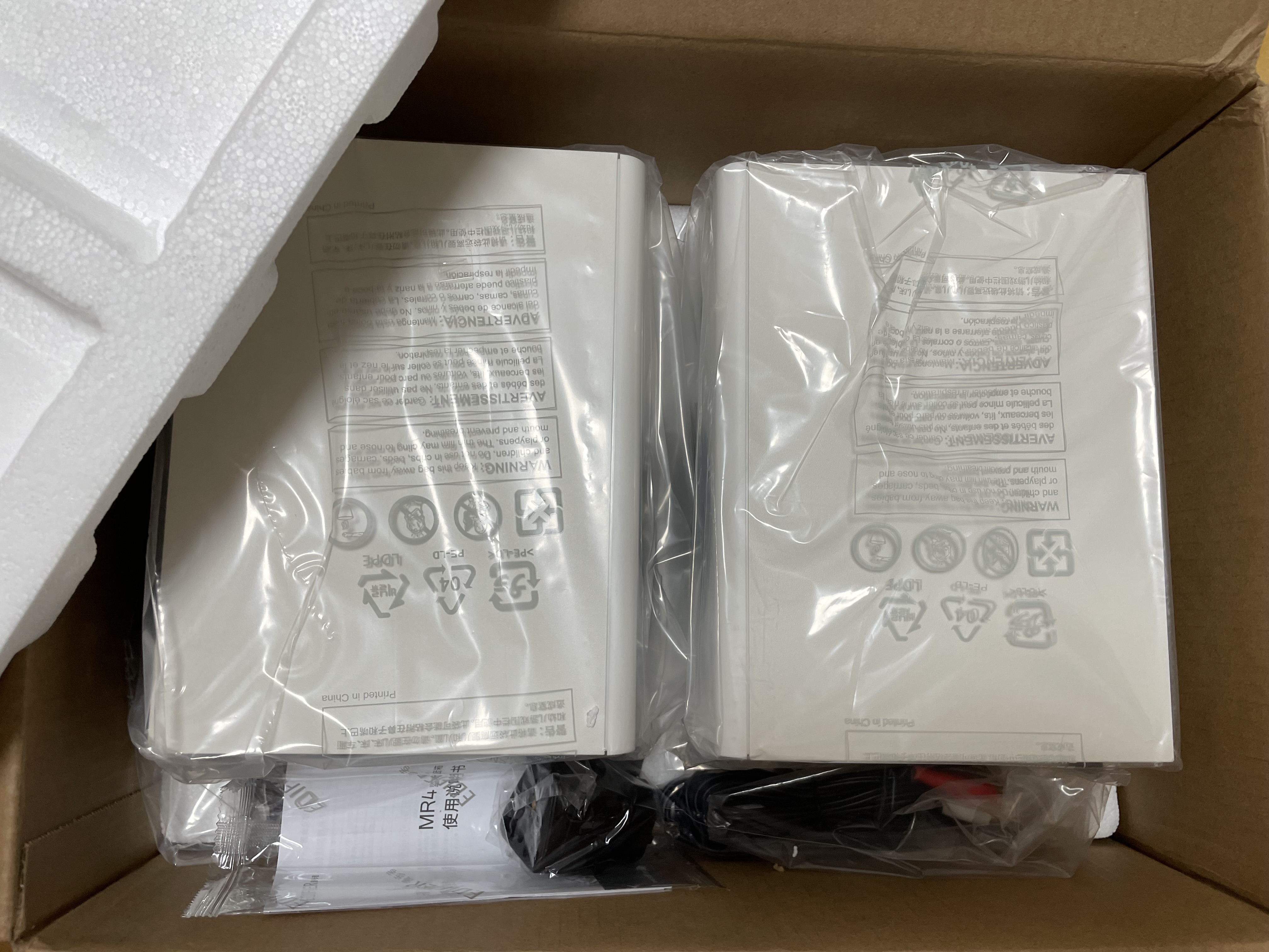 스티로폼으로 꽤 잘 보호가 되어 왔고, 위쪽 포장재를 걷어내니 비닐포장된 스피커 한 쌍이 보여요!