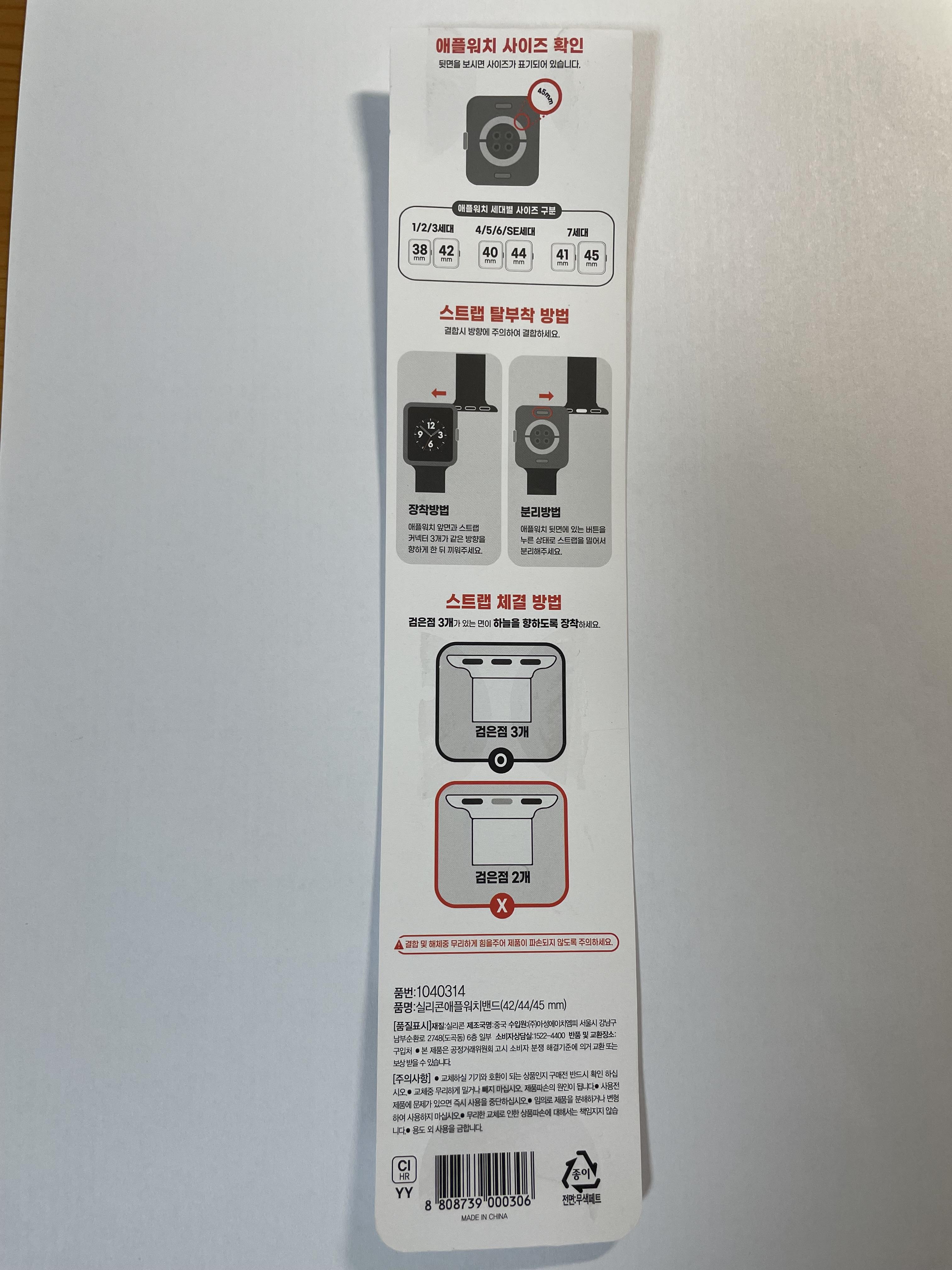 포장지 뒷면엔 설명서도 있군요. 워치를 처음 써보시는 분들은 탈부착방법이 헷갈리실 수도 있겠습니다. 그래서 부연 사진을 첨부하겠습니다!