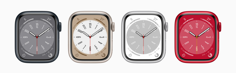 워치 시리즈8의 알루미늄 색상에서 레드를 뺀 3가지 색상과 같습니다!