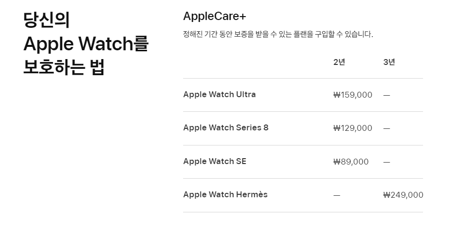 그러므로 저는 워치 구매할 때 다음과 같은 2년간의 애플케어 플러스 보증 서비스를 함께 구매하고 혹시나 고장났을 때의 수리 비용 걱정을 많이 덜어낸 상태에서 편하게 사용하면 어떨까 싶습니다.