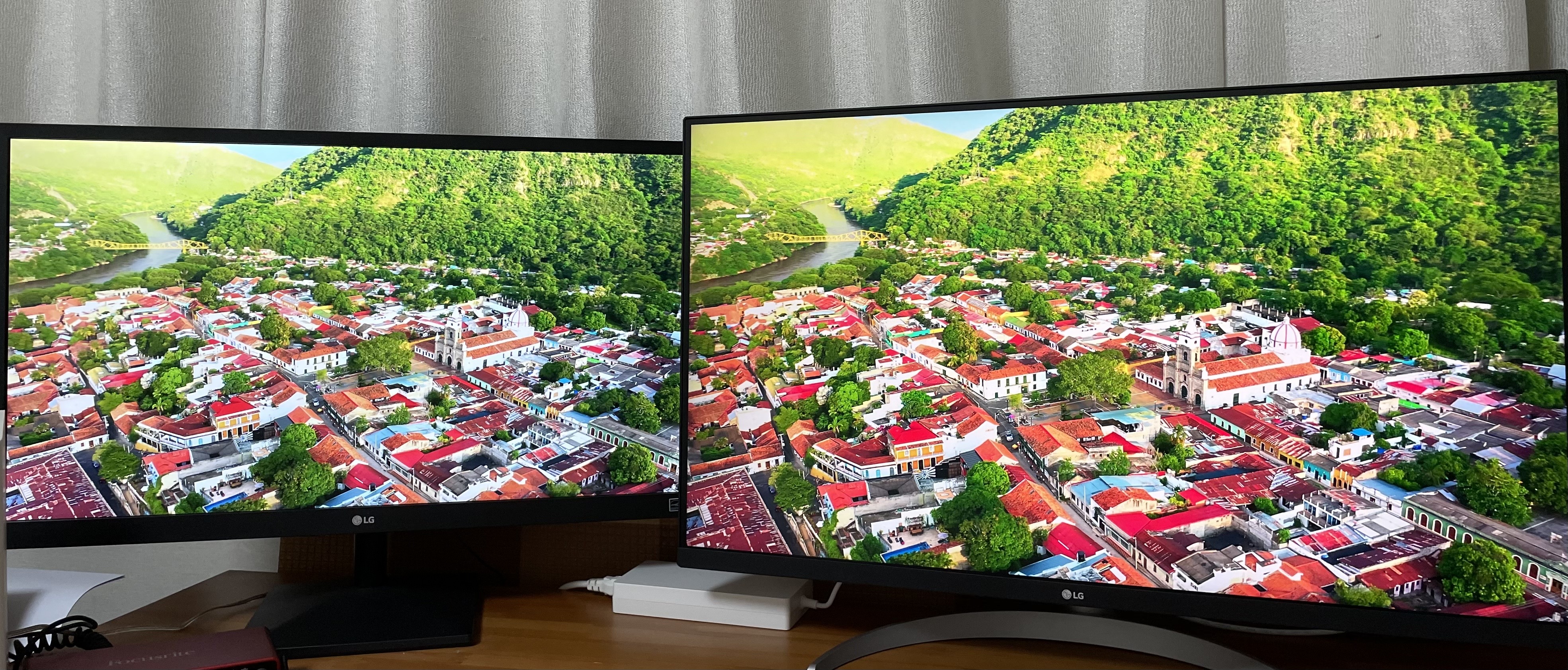 새로운 모니터를 보다보니 혹시 색감이 과장되어서 좋게 느껴지는 것은 아닐까 싶어서 핸드폰으로 찍은 원본 사진을 양쪽 모니터에 배경화면으로 등록해놓고 색감만 집중해서 비교하기도 하였는데요, 오른쪽 새로 구매한 4K 모니터의 색상이 원본과 더 가까웠습니다!