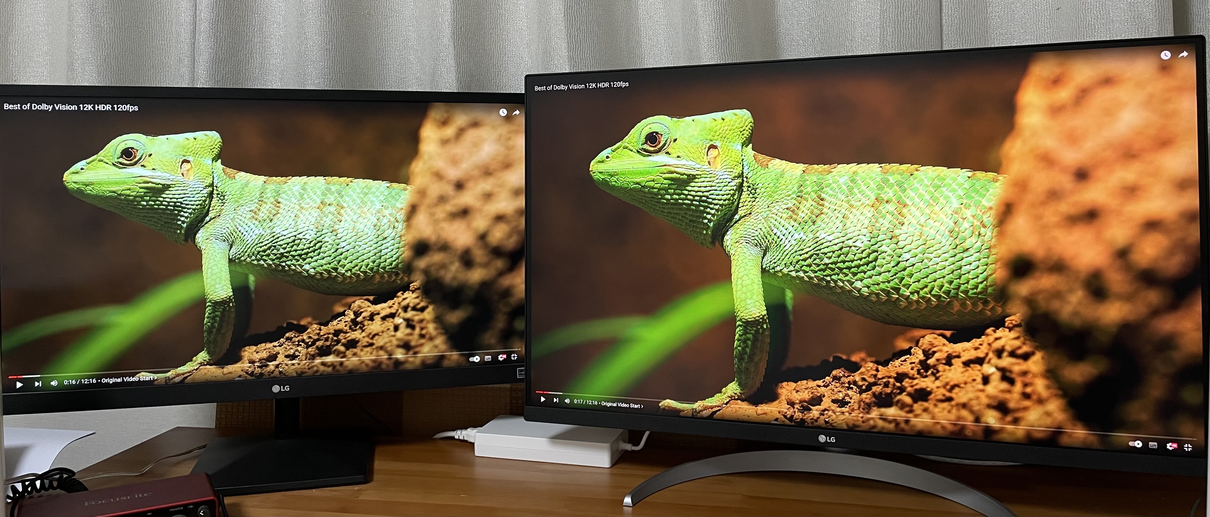 기존에 있던 27인치 FHD 모니터와 화질 비교를 위해 유튜브 4K 영상 같은 장면을 틀어보았어요
