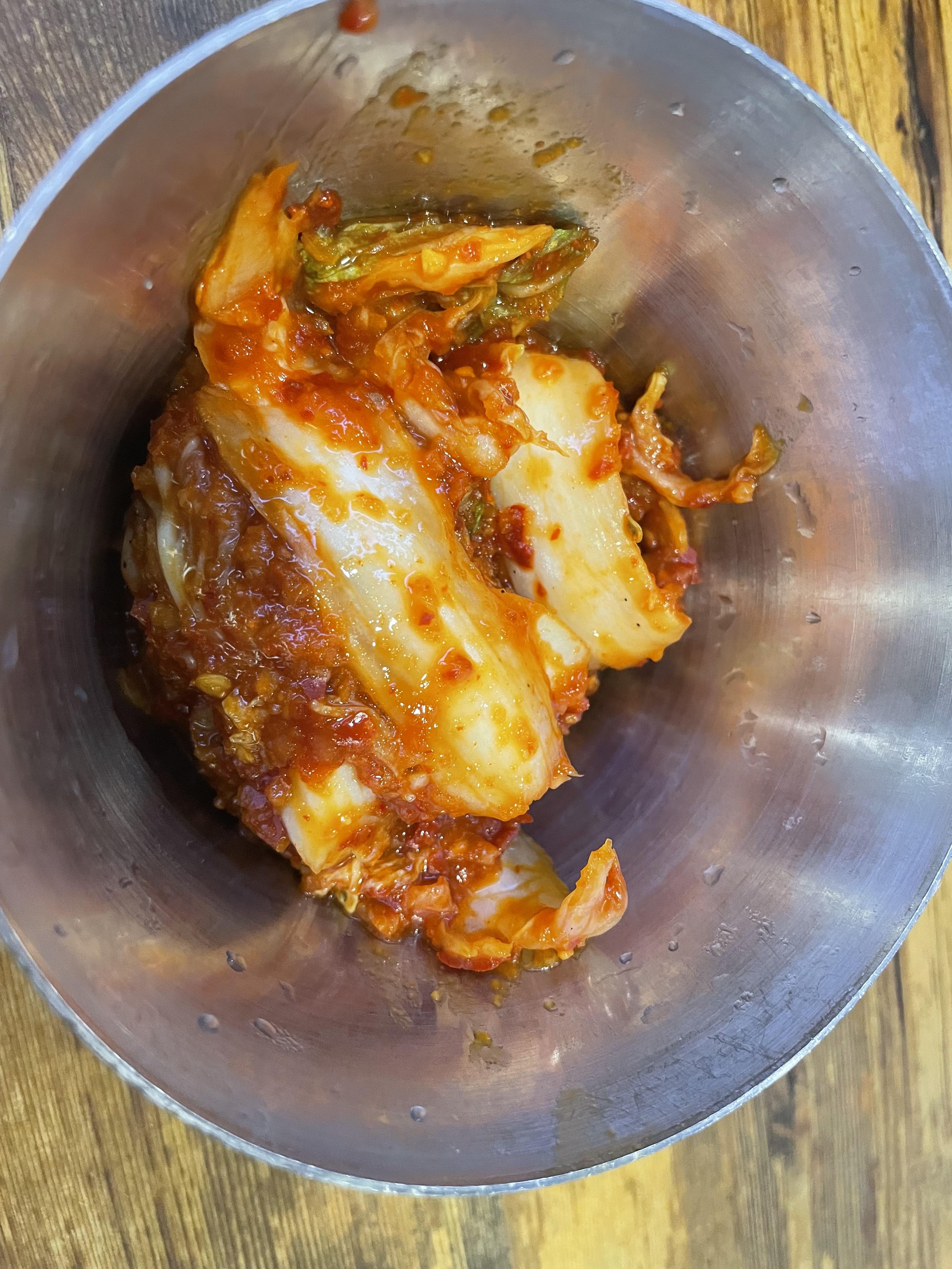 다른 곳에선 맛보기 힘든 마늘 향이 가득한 김치예요. 생마늘 향을 싫어하시는 분이라면 아마 몇 젓가락 못 먹고 그만 드실 것 같아요. 그런데 저는 생마늘을 좋아하고 김치에서 풍기는 진한 마늘향이 너무나 좋아서 이 '마늘김치'가 이 집을 계속 생각나게 하네요. 이 글을 쓰는 지금도 어디선가 알싸한 마늘향이 풍겨오는 것만 같습니다!