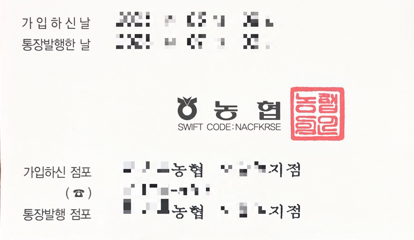 간판: [지역명]농협 + [지역명]지점 ex. 영등포농협 동작지점 통장 맨 앞페이지에 'OO농협 OO지점' |