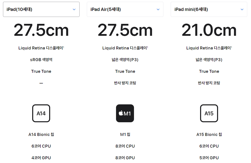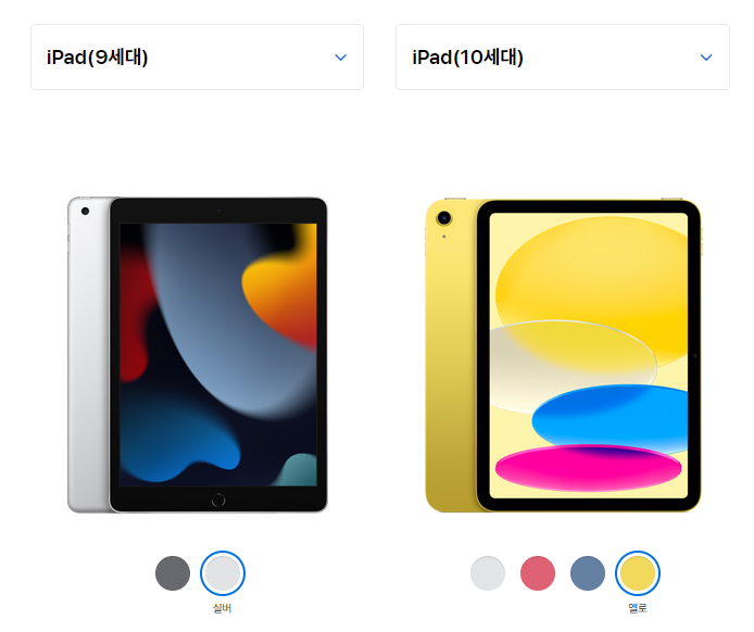 | iPad(10세대) | iPad mini(6세대) | iPad Air(5세대) | iPad Pro 11(4세대) iPad Pro 12.9(6세대) |